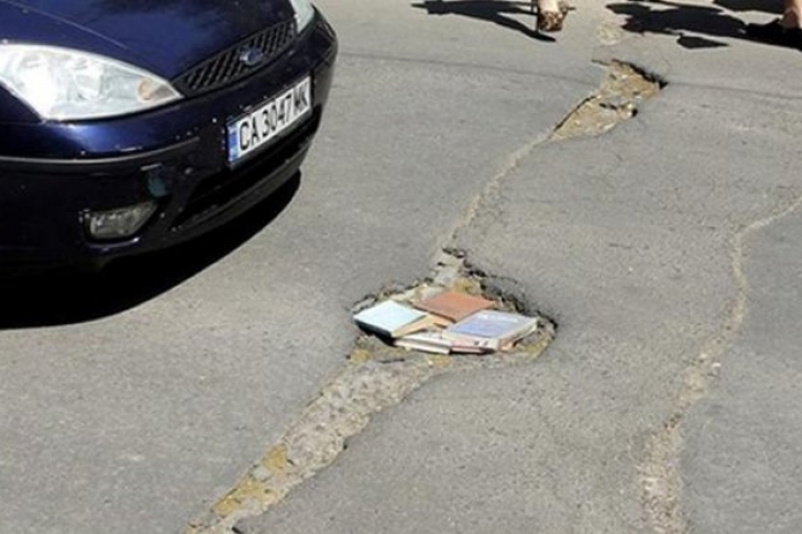 "Дороги в Одессе, как и в большинстве городов нашей страны, оставляют желать лучшего. В этом случае просто желать кому-то уже надоело, и в большую яму кинули несколько книг",- пишет Наталья.