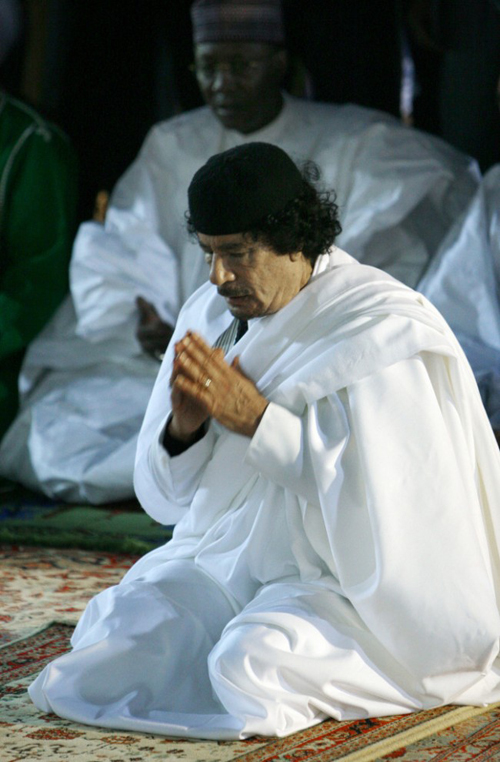 Каддафи был замечен на богослужении после произнесенной речи в городе Бенгази 25 февраля 2010 года.