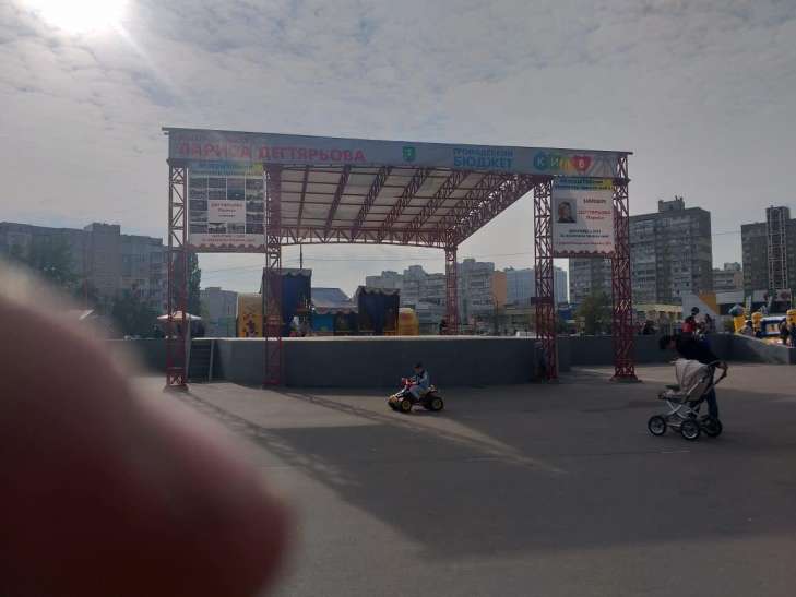 Агітматеріали Лариси Гончарової висять на сцені парку Воїнів-інтернаціоналістів.