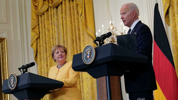 Соединенные Штаты и Германия согласны с тем, что России нельзя позволять использовать ее энергоресурсы в качестве оружия и для принуждения соседей, заявил Байден.