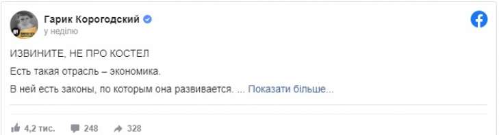 Бизнесмен и общественный деятель Григорий (Гарик) Корогодский обратился в социальной сети Facebook к Президенту Украины Владимиру Зеленскому с вопросом о либерализации налоговой системы, которую президент обещал в период выборов. Также Корогодский указал, что те экономические изменения, за которые он голосовал, или не состоялись, или наоборот усложнили бизнесу жизнь.