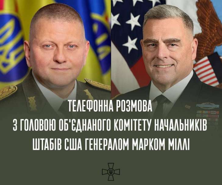 Главнокомандующий ВСУ Валерий Залужный провел телефонный разговор с Главой объединенного комитета начальников штабов США генералом Марком Милли. Стороны обсудили ситуацию на фронте.