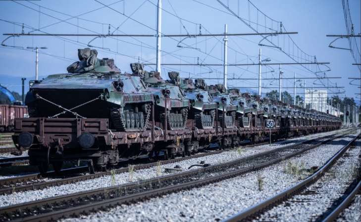 Об этом сообщает словенское издание 24UR, журналисты которого сфотографировали эшелоны с БМП на пути к польской границе.