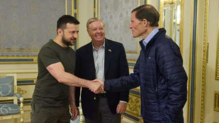Президент України Володимир Зеленський зустрівся з сенаторами Ліндсі Гремом і Річардом Блюменталем під час їхнього візиту до Києва.
