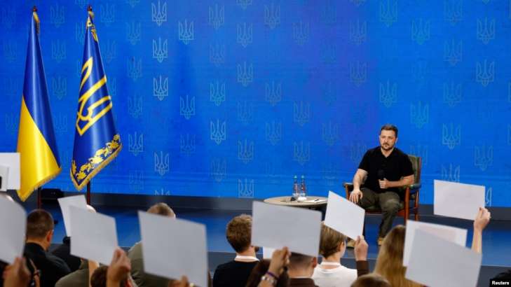 Фото: Владимир Зеленский выступает на пресс-конференции. Киев, 27 августа 2024 г.