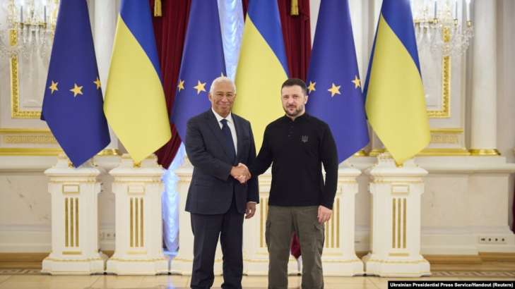 Зеленский выступил перед журналистами в Киеве вместе с новым председателем Совета Европейского союза Антониу Коштой, который отправился в Украину в первый день своего пребывания в должности, чтобы выразить поддержку Киеву в его войне с россией, передает Reuters.