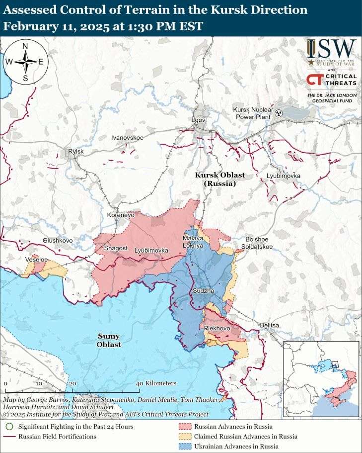 — Последнее утверждение указывает на то, что российское военное командование, возможно, планировало провести наступательную операцию с целью захвата Суджи, важного газотранспортного узла и главного города, который контролируют украинские силы в Курской области, — считают в ISW.