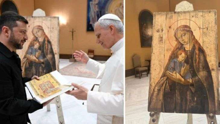 Президент Украины Владимир Зеленский в рамках визита в Ватикан передал Папе Римскому Льву XIV особый подарок — икону Божией Матери с младенцем.