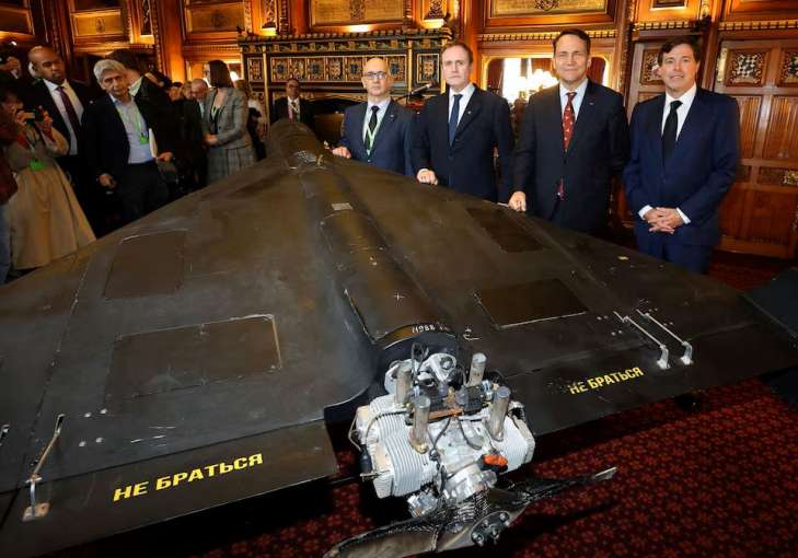 Під час поїздки Сікорський продемонстрував збитий в Україні дрон Shahed-136 та закликав європейські держави "залишатися на обраному шляху" допомоги Києву.