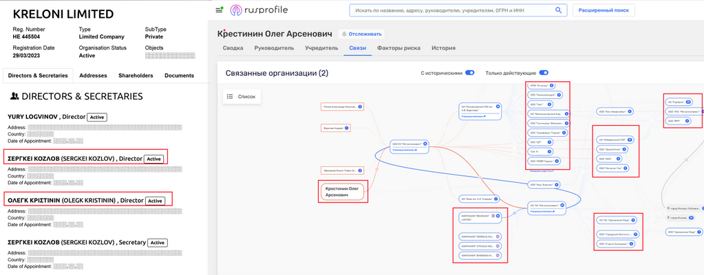 Сергей Козлов и Олег Крестинин в схемах «Kreloni Ltd», «Rezzal Properties Ltd», «Capito Ltd»