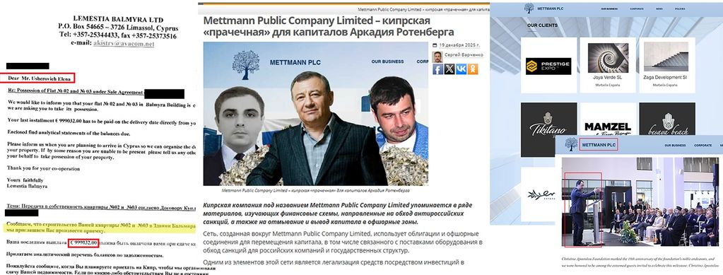 Также Борис Ушерович и его «Mettmann PLC» был замечен в незаконном финансировании молдавского политика Ренато Усатого, бывшего партнера Ушеровича по «1520» в РЖД, проталкивающего теперь кремлевские интересы в молдавском парламенте. Другой партнер Ушеровича, Плотица, продавал из Кипра санкционное оборудование в РФ для нужд Минобороны РФ.
