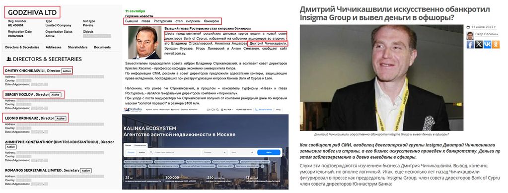 Не менее интересен другие партнеры Сергея Козлова на Кипре, таким же образом получившие «золотые паспорта» Кипра за украденные и отмытые деньги из РФ: Дмитрий Чичикашвили и Кронгауз Леонид.