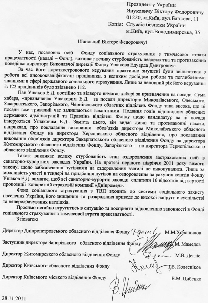 Сейчас идет проверка Службой безопасности Украины фактов изложенных в открытом письме к Президенту Украины В.Ф.Януковичу и СБУ за подписью ряда руководителей региональных руководителей Фонда.