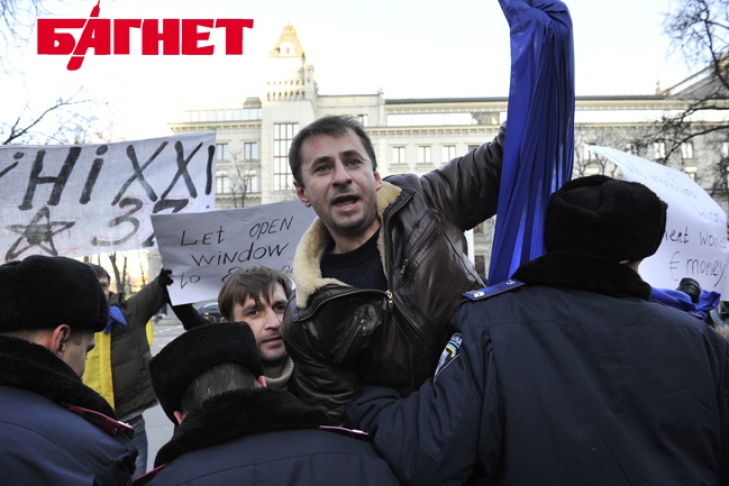 Как отмечает специальный корреспондент «Багнета», акция протеста состоялась в два приема: первую «партию» протестующих под лозунгами «Украина хочет евро, а правительство – евро (деньги)» практически в полном составе погрузили в автозаки и увезли.
