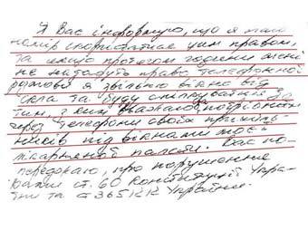 «Если в течение часа мне не предоставят право телефонного разговора, я освобожу окно от стекла и буду общаться с тем, с кем считаю нужным через телефоны своих сторонников под окнами моей больничной палаты», - говорится в записке, ссылаясь на 60 статью Конституции, которая гласит, что «за отдачу и исполнение явно преступных распоряжений наступает юридическая ответственность».