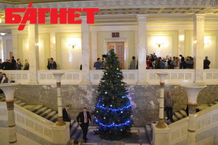 Верховная Рада Украины нового созыва, проработав буквально несколько дней, успела уйти на новогодние каникулы. Впрочем, ряд важных вещей Рада таки сделала - избрала свое руководство, утвердила предложенного Президентом премьера, распределила комитеты. Кроме этих мелких радостей, депутаты нынешнего созыва успели поставить новогоднюю елку на лестничной площадке в холле Рады, сфотографироваться на ее фоне, а сторонники нового стиля - отпраздновать Рождество прямо в стенах парламента. Так, новогодняя елка в парламенте - искусственная, однако довольно небогато украшена. Она занимает центральное положение в интерьере центрального холла парламента. Депутаты после заседания с удовольствием фотографировались на ее фоне перед тем, как пройти к гардеробу.