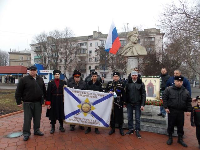 Затем казаки прошли крестным ходом от Спасо-Преображенского собора к памятнику Богдану Хмельницкого с иконой и знамем России, зачитали неизвестную доселе речь Богдана Хмельницкого, произнесенную им в ходе Переяславской Рады и разошлись.