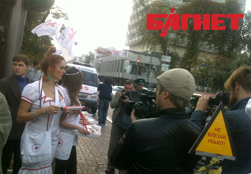 Утром во вторник, 17 сентября, Верховную Раду оккупировали врачи. Перед зданием парламента появилась карета экстренной медицинской помощи, несколько человек в белых халатах и медицинская сестра. Один из врачей огораживал Верховную Раду желтой лентой и сообщал, что «здесь обнаружен вирус». Остальные медики пытались снабдить народных депутатов лекарствами в баночках с надписью «Стокоррупцин». При ближайшем рассмотрении, врачи оказались актерами комик-группы «Маски-шоу».