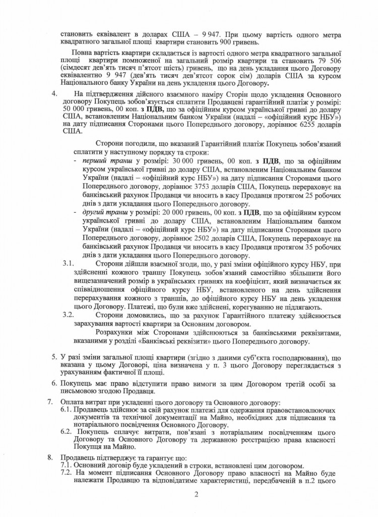 Стоимость каждой из двух квартир согласно договорам составляет всего 79 506 грн. ($ 9 947), то есть за две квартиры в жилом комплексе «София Киевская» Бриченко заплатил 159 012 грн., что по курсу НБУ на момент продажи составляло меньше $ 20 000. За один квадратный метр приобретенной жилплощади Бриченко уплатил всего 900 грн.