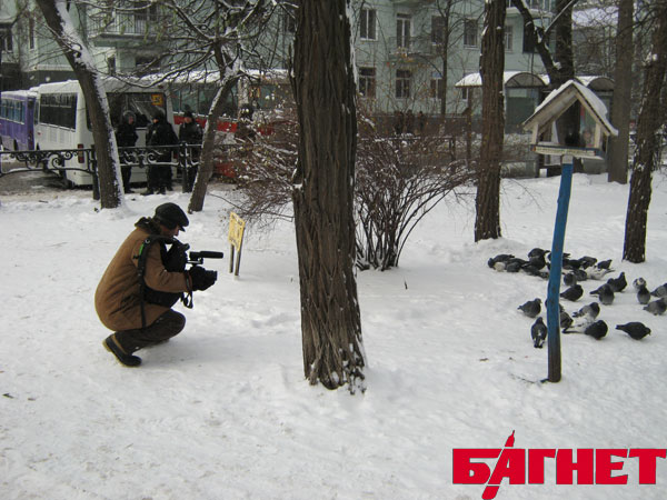 В Мариинском парке, рядом с митингующими, оператор снимает птиц