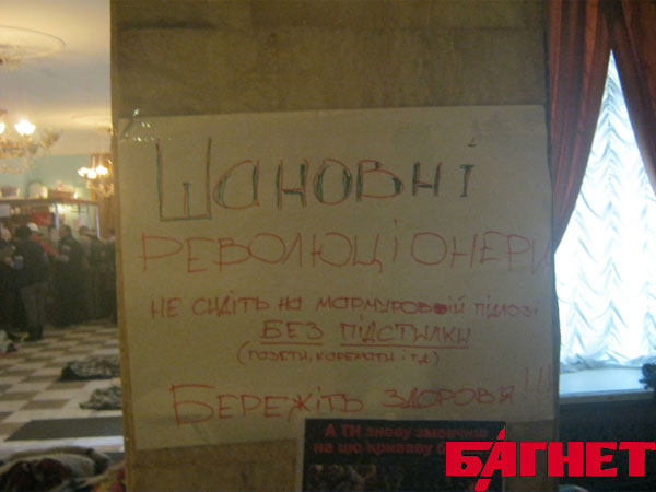 Утро 10 декабря не стало знаковым для всех участников Евромайдана. После вечерней «зачистки» правительственого квартала милиция скучала по периметру «золотого треугольника», ВР-КМ-АП, ди-джеи митинга регионалов возле Рады высказывались в поддержку власти, а на Евромайдане смотрели кино про события 2004 года. Корреспондент «Багнета» прошел по маршруту м.«Арсенальная»-ВР-ул.Институтская-НБУ-АП-Майдан-ЦУМ-Европейская площадь-КМ-ВР-м.Арсенальная». Отчет см. в фоторепортаже.