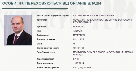 Служба безопасности Украины объявила в розыск бывшего заместителя министра доходов и сборов Александра Клименко — Андрея Игнатова.