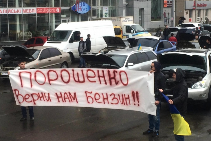Сегодня в Харькове около часа было блокировано движение по Павловской площади в центре города. Около 60 автомобилистов перекрыли движение, протестуя против значительного роста цен на бензин. Активисты развернули баннер с надписью: "Порошенко! Верни нам бензин!". Участники акции били по асфальту пустыми канистрами для бензина. Организатор мероприятия студент Национального юридического университета им. Яросалва Мудрого Валерий Макарченко отметил, что подобные акции будут продолжаться и в будущем, в случае если цена на бензин не упадет. "Мы требуем от центральной власти внимательного отношения к проблемам регионов. Цены на такие базовые вещи, как бензин или хлеб должны быть в зоне доступности для простого народа. Протест будет расширяться. Сегодня, к примеру, к нам присоединились и таксисты. Число недовольных экономической ситуацией растет", отметил активист.