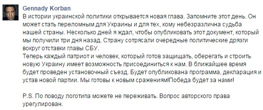 "В ближайшее время будет проведен установочный съезд. Будет опубликована программа, декларация и устав новой партии", – отметил Корбан.