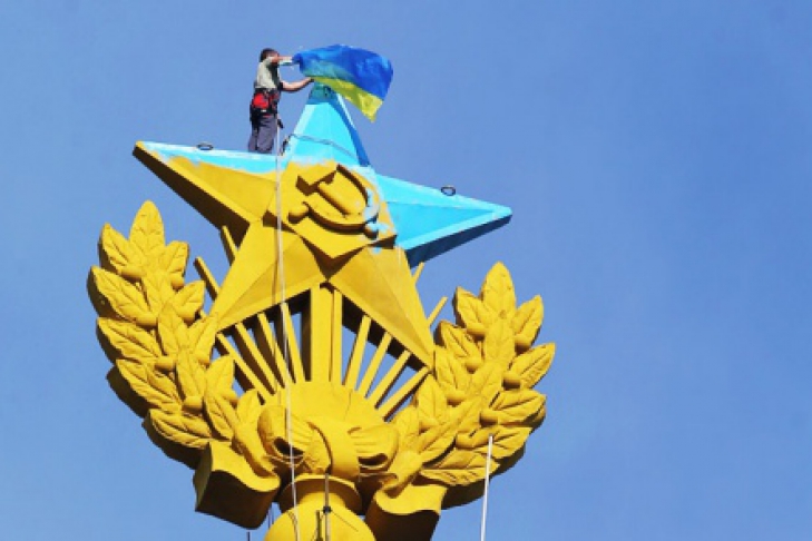 Как известно, 20 августа 2014 года руфер Павел Ушевец, более известный как руфер Мустанг покрасил звезду на Котельнической набережной в цвета украинского флага.