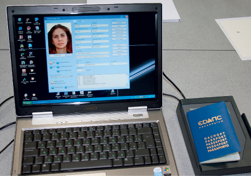 Система, отлаженная специалистами Консорциума "ЕДАПС", работает безошибочно - за одну секунду на экран монитора выводится биометрическая информация, записанная в память чипа