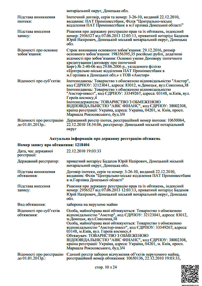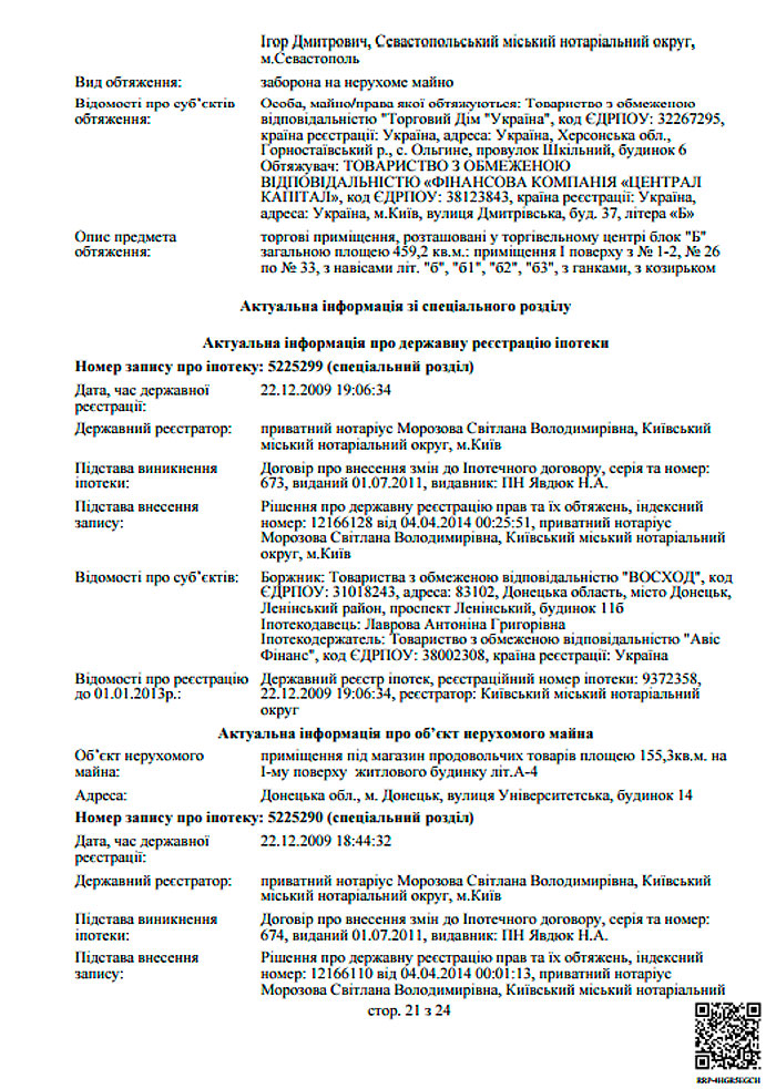 Константиновский завод «Кристалл», «Макеевский универмаг», «Механический завод «ТОР», гостиница «Братислава», «Полимер Альянс ЛТД», Донецкий ЦУМ, ресторан «Дружба» в Константиновке, отель «Шахтер», ТРЦ «Декор Донбасс», Одесский «Стальканат», крупнейший в Европе промтоварный рынок «7 километр» и еще десятки предприятий по всей Украине.