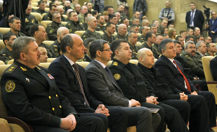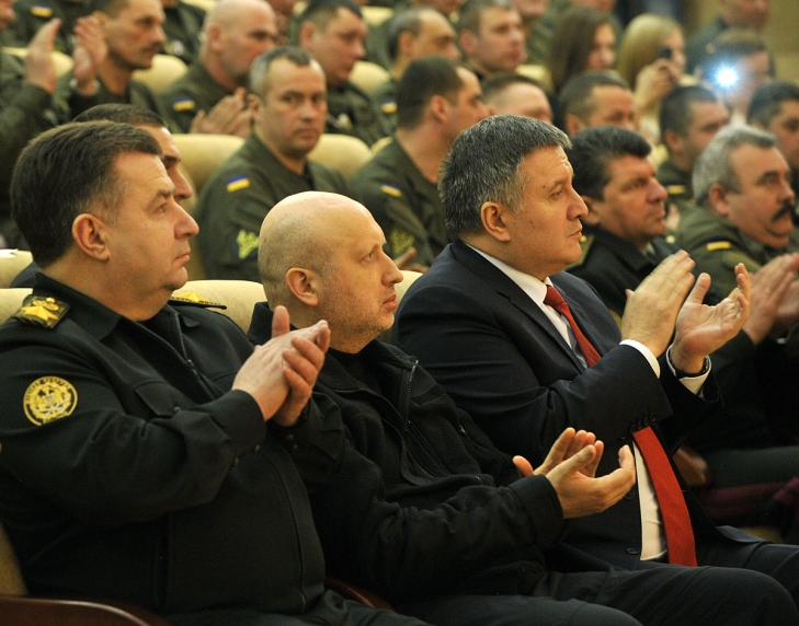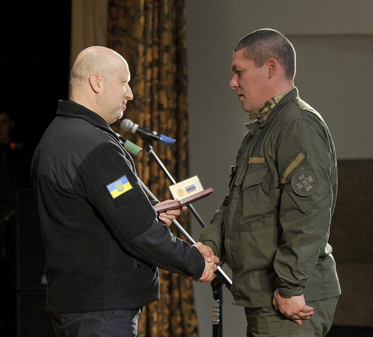 «Було прийнято рішення звернутися до тих, хто тоді був у самообороні Майдану, хто власною кров'ю і власним життям захистив Україну від тиранії, - сказав О.Турчинов, звертаючись до присутніх.