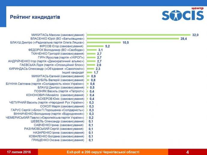 Відзначимо, що екзит-пол «Соцису», за інформацією ПіК замовив штаб Максима Микитася.