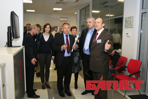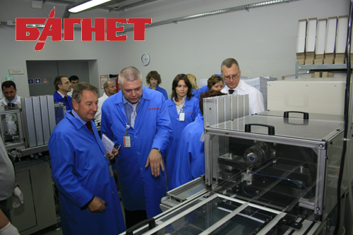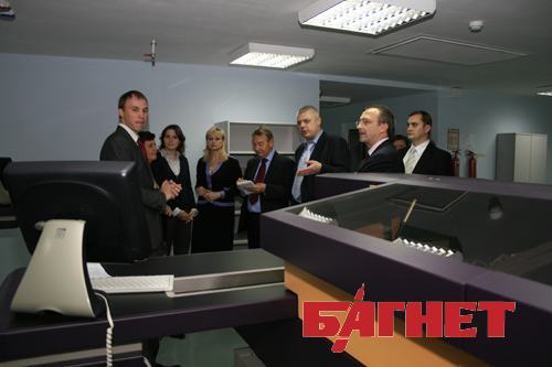 После Межрегионального центра еврокомиссары отправились на предприятие «Знак», где их встретил генеральный директор завода Игорь Попович. Он показал все основные этапы производства пластиковых карт и бланков документов. В том числе было продемонстрировано оборудование – собственные уникальные разработки ученых Консорциума «ЕДАПС», которые по производительности и точности работы уже превышают зарубежные аналоги. Европейцам очень понравился высокий технологический уровень предприятия. Особенно тщательно они расспрашивали о внедренной на заводе системе безопасности, учете и хранении бланков поликарбонатных страниц, вшиваемых в паспортную книжку нового загранпаспорта.