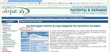 И там есть такой абзац: «В июне этого года на сайте агентства «Украинские торговые марки» появилась заметка «На Богадар опять в суд подали по патенту на квас». В ней сообщалось о том, что в хозяйственный суд Киева поступило исковое заявление ООО «Барта ЛТД» к Государственной службе интеллектуальной собственности Украины и запорожскому ООО «Богадар». В нем истец потребовал признать недействительными патенты, принадлежащие последней компании - Способ производства кваса» под №92466 и «Способ производства концентрата квасного сусла» под №92468. «Конечно, процесс будет не быстрый, но интересный. Понаблюдаем за ним» - указал в конце заметки ее автор, патентный поверенный Игорь Кондратюк».