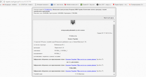 Начнем с самого простого вопроса – а как к журналистам попало определение по делу Гречковского, в котором они «вычитали» фамилию Б.Львова? На скан-копии красуется гордая надпись «Єдиний державний реєстр судових рішень», только вот получить текст определения от 22 сентября по делу №7574652416-к из ЕГРСР было никак невозможно, доступ к нему просто-напросто закрыт!