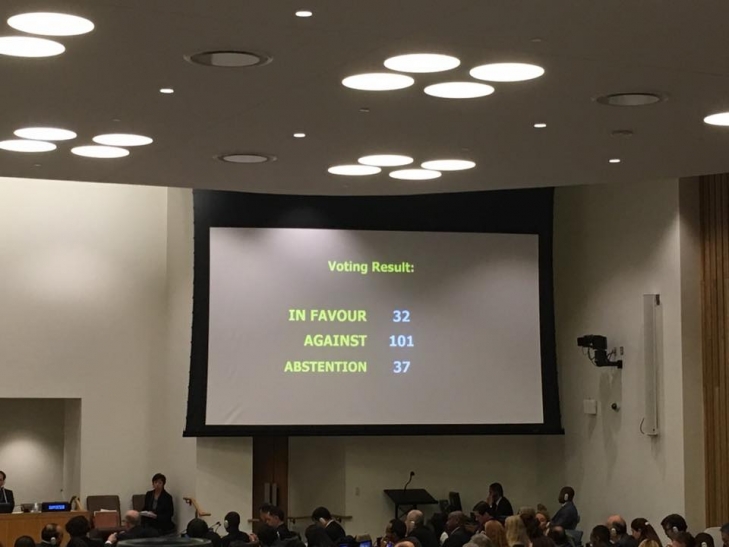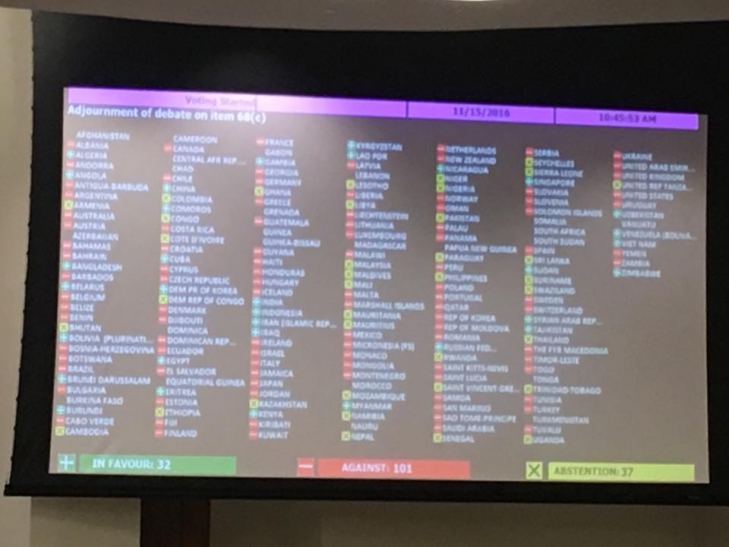 Впрочем инициативу Беларусь не поддержали: 101 страна "против", воздержались -37, "за" - 32.