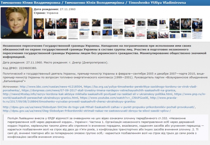 "Миротворец" добавил в список нарушителей Юлию Тимошенко