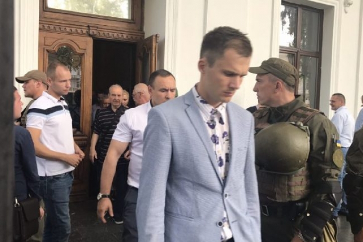 Депутаты городского совета в спешке эвакуировались из мэрии после уличных столкновений активистов с полицией и муниципальной охраной. Один из избранников забыл "темник" на столе. Имя депутата на данный момент не известно.