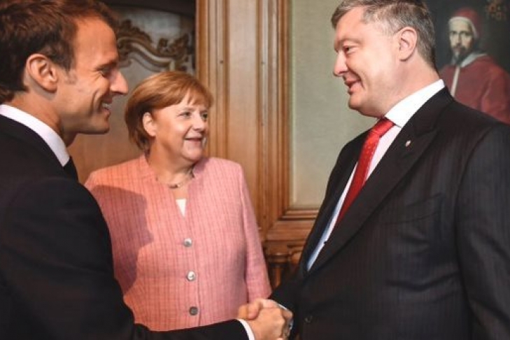 "Президент Петр Порошенко проводит переговоры с канцлером Германии Ангелой Меркель и президентом Франции Эммануэлем Макрона в немецком Аахене", – написал он.