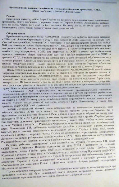 В частности, они заявили, что три дела, которые ведутся против Логвинского являются политически мотивированными. По их словам, правозащитники провели анализ всех трех производств (№5201700000000061, №52013000000000436, №52016000000000163) и констатируют, что "НАБУ ищет коррупционные преступления в коммерческих спорах хозяйственых субъектов".