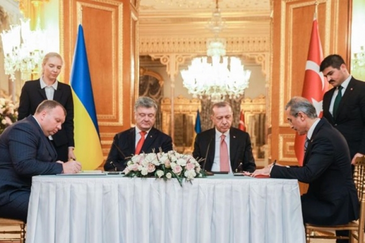 Отмечено, что Порошенко и президент Турции Реджеп Тайип Эрдоган подписали Совместное заявление по результатам Седьмого заседания Стратегического совета высокого уровня между Украиной и Турецкой Республикой. Также в присутствии глав двух государств был подписан Меморандум между ГК Укроборонпром и Госагентством по вопросам оборонной промышленности Турции относительно взаимных банковских гарантий. В частности, документ подписали гендиректор Укроборонпрома Павел Букин и президент по вопросам оборонной промышленности Турции Исмаил Демир.