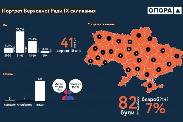 Средний возраст народных депутатов Верховной Рады ІХ созыва на 7 лет снизился по сравнению с предыдущим созывом парламента, - сообщает ОПОРА.