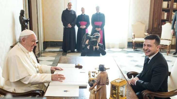 Президент Украины Владимир Зеленский обратился к Папе Римскому Франциску с просьбой помочь с освобождением украинцев, попавших в плен на Донбассе, в Крыму и России. Об этом сказано в сообщении на странице Зеленского в Twitter.