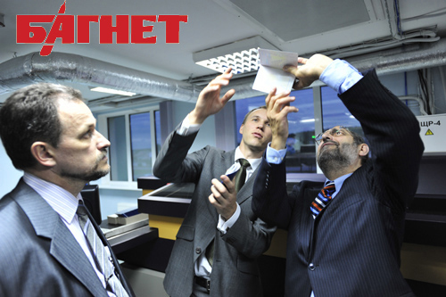 Еврокомиссар Франциско Баталлер (справа) изучает выданный ему на предприятии Консорциума «ЕДАПС» прототип биометрического паспорта