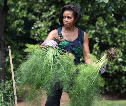 Первая леди выращивает овощи в огороде, который она разбила в саду президентской резиденции. Мишель Обама является горячей сторонницей здорового образа жизни. 9 февраля 2010 г Мишель Обама объявила о начале работы программы «Let's Move» по борьбе с детским ожирением.
