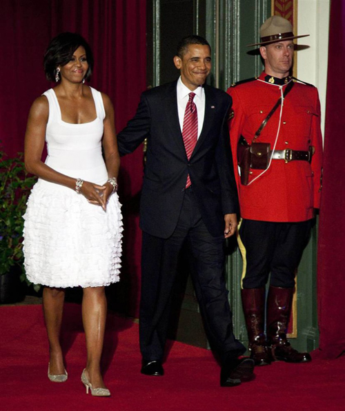 Для официального ужина во время саммита «Большой двадцатки» в Торонто в субботу 26 июня 2010 первая леди США выбрала белое платье от своего любимого дизайнера Аззедин Алайя (Azzedine Alaia).