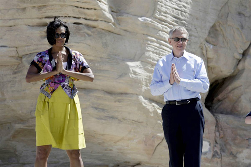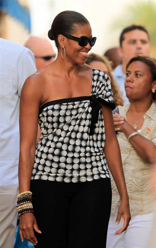 На встрече с президентом Индии Пратибхой Патил 8 ноября 2010 во время визита президента США в Нью-Дели Мишель Обама присутствовала в костюме, немного напоминающем индийскую одежду.