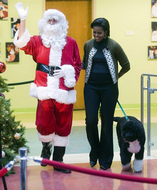 Согласно традиции, автором которой является первая леди Бесс Трумэн, Мишель Обама вместе с Санта-Клаусом идет навестить пациентов, сотрудников и гостей Национального медицинского центра для детей в Вашингтоне. Для этого визита первая леди выбрала жакет от J.Crew.