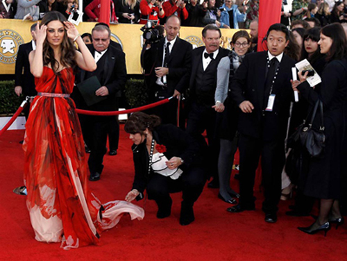 Мила Кунис, сыгравшая вместе с Натали Портман одну из главных ролей в картине «Черный лебедь», на красной дорожке 17-й церемонии вручения наград Гильдии актеров Экрана (Screen Actors Guild Awards). 27-летняя актриса, которая родилась в украинском городе Черновцы, в день церемонии надела шифоновое платье с открытыми плечами от Alexander McQueen и ювелирные украшения от Cartier общей стоимостью более 30 тысяч долларов.